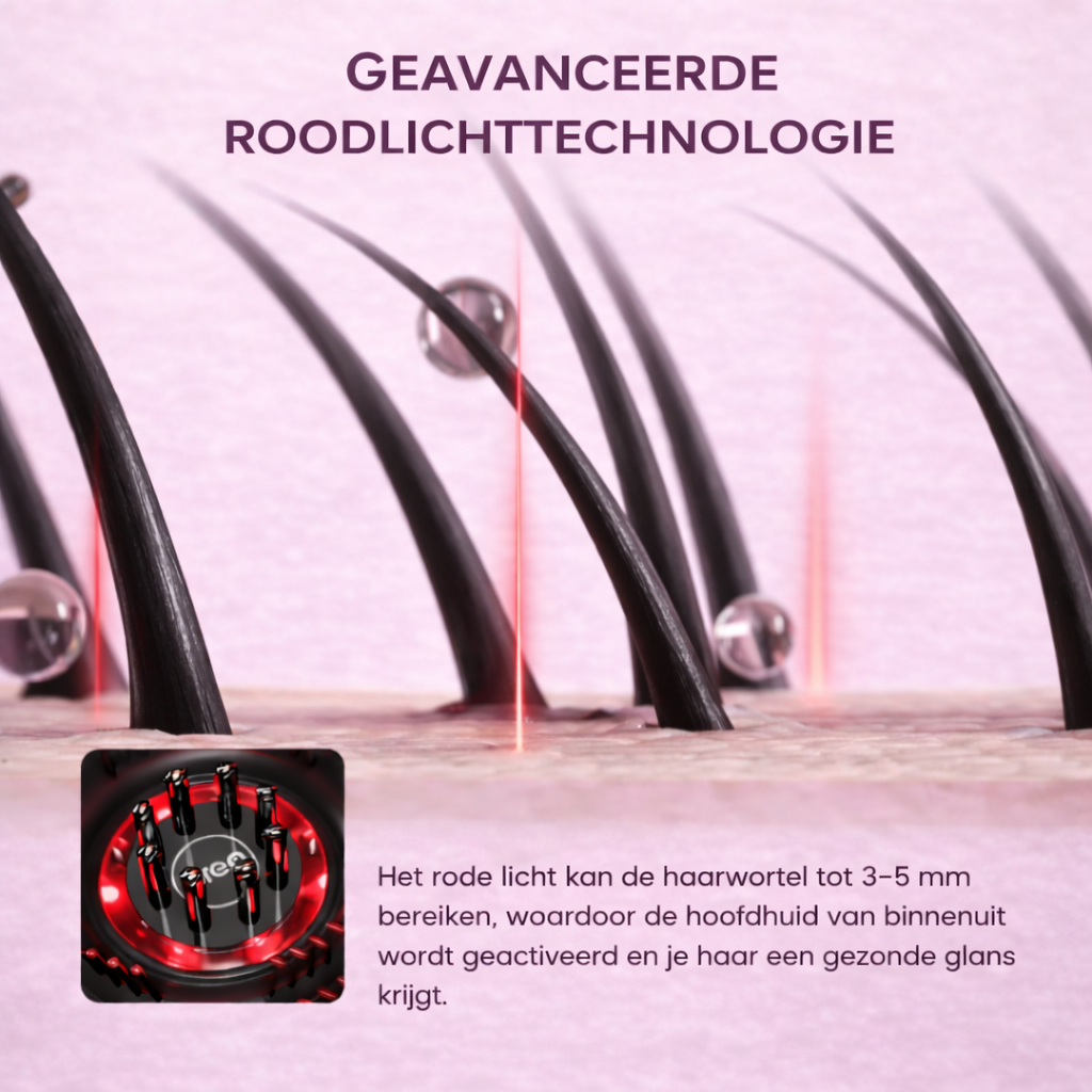 ✓ Rode lichttherapie – stimuleert de bloedcirculatie en activeert haarzakjes voor sterker, glanzend haar.